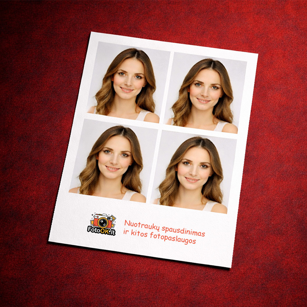 Dokunentinių nuotraukų paruošimas iš paprastos nuotraukos, spausdinimas pagal dokumentinių nuotraukų standartus ir proporcijas, ant aukštos kokybės, matinio fotopopieriaus bei pristatymas į paštomatą (pristatymo kaina skaičiuojama atskirai).